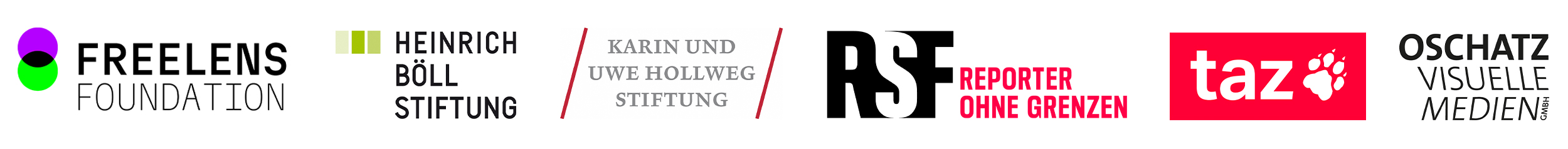 Die Ausstellung wird unterstützt von der Heinrich Böll Stiftung, der Karin und Uwe Hollweg Stiftung, der Freelens Foundation, Reporter ohne Grenzen, taz, die tageszeitung und Oschatz Visuelle Medien.